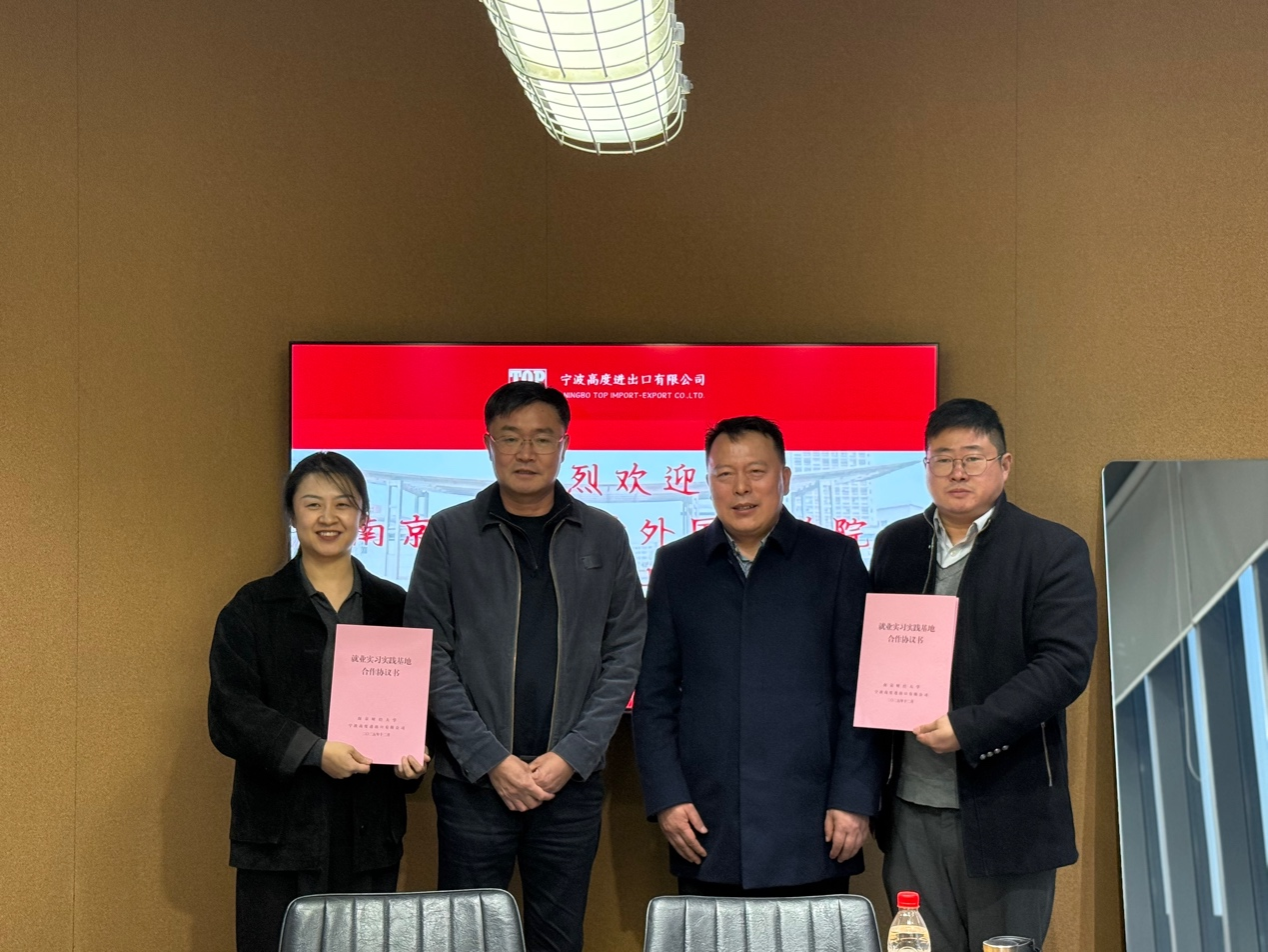 为进一步深化产教融合,拓宽学生实习就业渠道,提升专业建设水平,12月3日下午,AG平台 院长孙勇彬率队赴宁波高度进出口有限公司(以下简称“高度公司”)开展专题调研,并与企业签署两项重要合作协议。学院党委副书记孙大松、副院长王晨、本科教学院长助理冯镜元、法语系主任储春花一同参加调研。