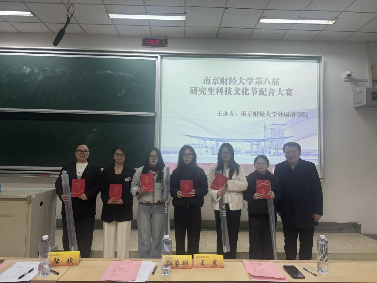 11月27日晚,由党委研究生部主办、AG平台 承办的南京财经大学第八届研究生科技文化节外语配音大赛在德正楼115教室精彩上演。本次大赛创新设置“人工配音”与“AI配音”双赛道,吸引了全校24支研究生队伍同台竞技,以声为媒展现语言魅力与科技赋能的融合之美。AG平台 党委书记陆斌、院长孙勇彬、副院长王晨、学科竞赛办公室主任陈芙蓉、教师李想应邀担任评委,2024级研究生朱琳主持活动。