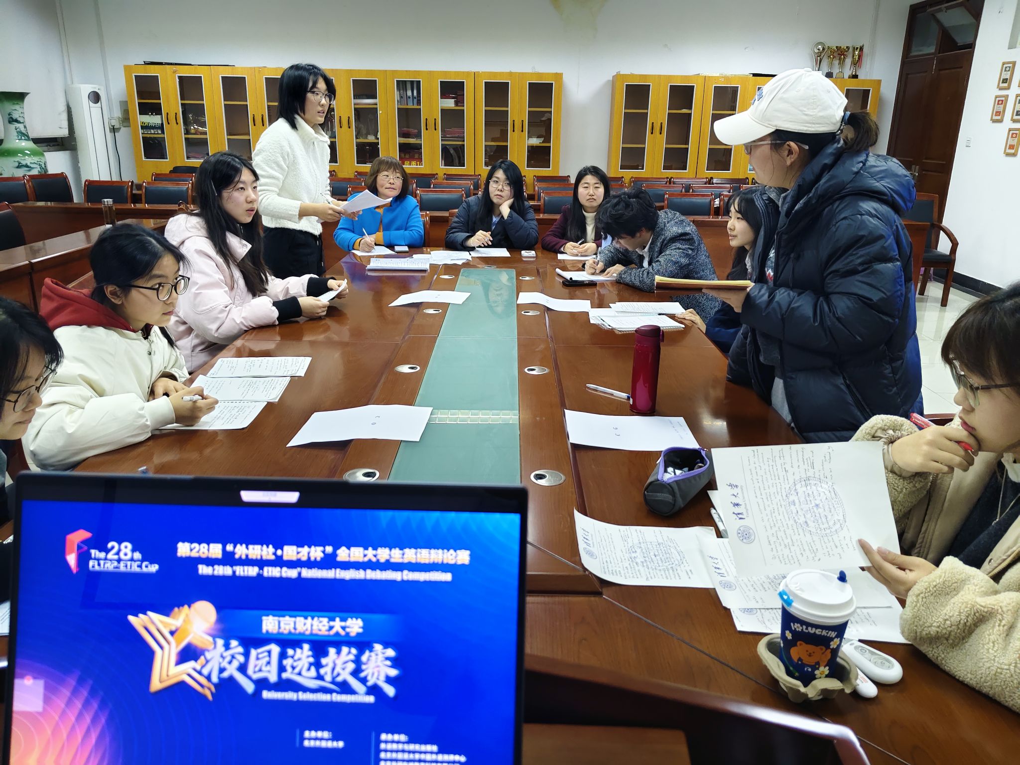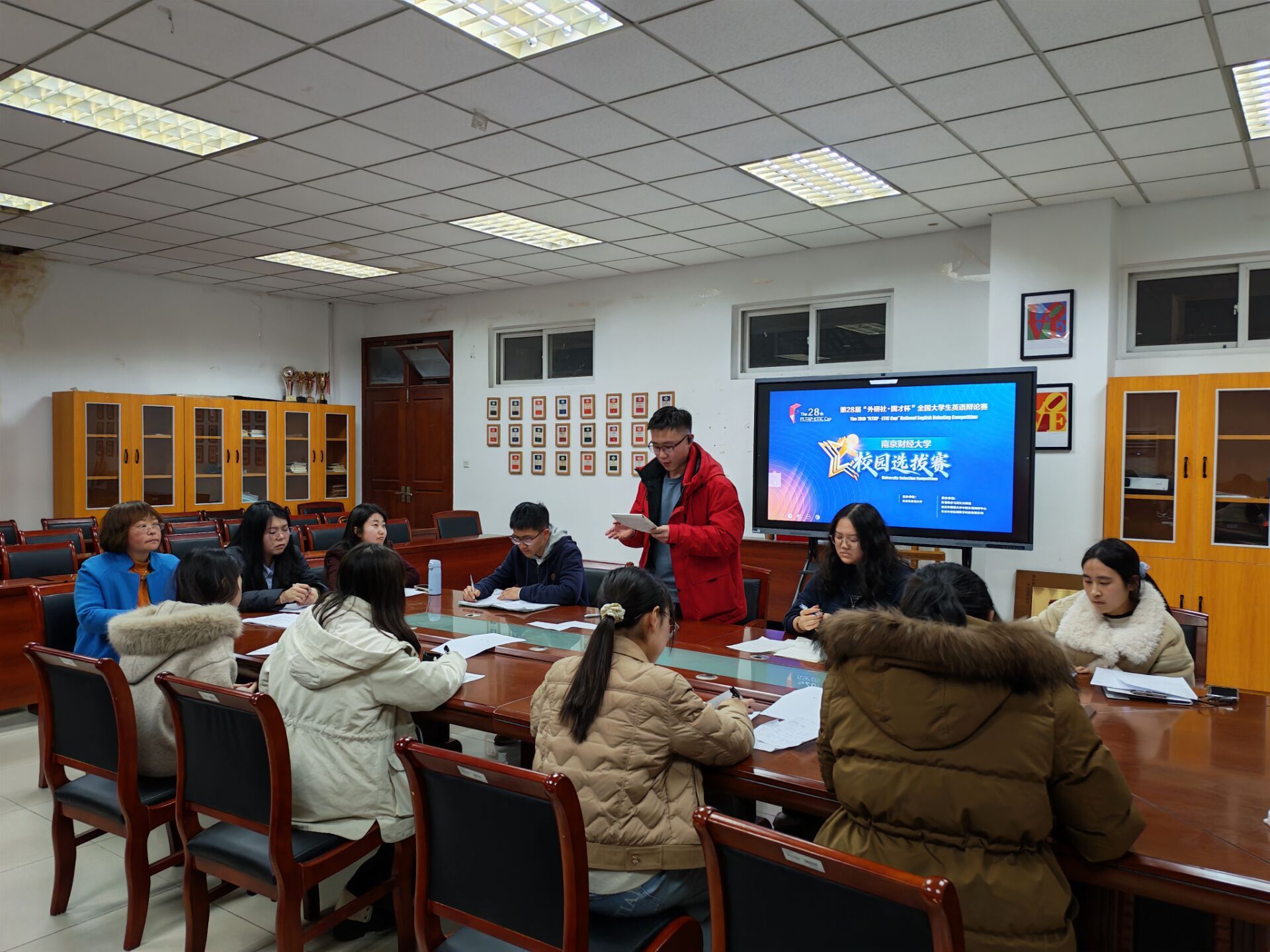 3月19日晚,第28届“外研社・国才杯”全国大学生英语辩论赛南京财经大学校园选拔赛在仙林校区德正楼308会议室顺利举行。本次赛事由南京财经大学教务处主办、AG平台 承办,旨在以辩论锤炼语言能力、以思辨培育国际视野,选拔优秀队伍代表学校征战华东地区复赛与全国决赛。