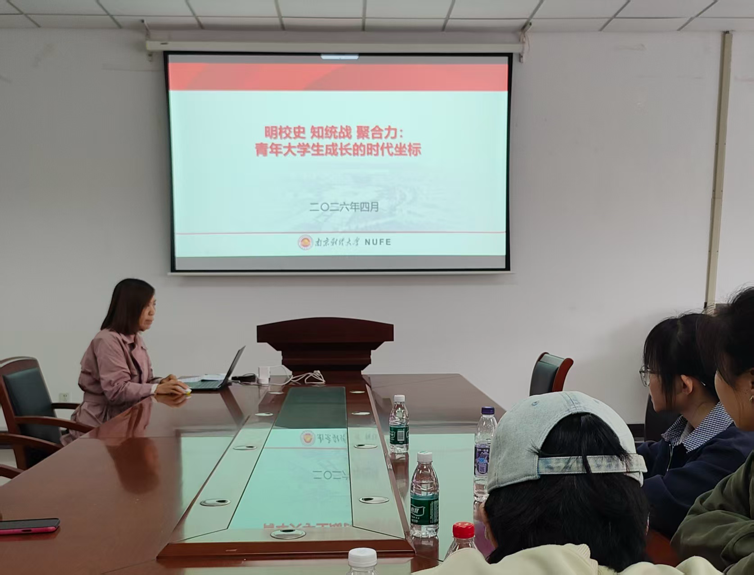4月21日下午,AG平台 邀请校档案馆安艳杰为第二十一期分党校、青马班在德正楼308会议室开展以“明校史·知统战·聚合力:青年大学生成长的时代坐标”为题的专题培训。本次课程围绕统一战线理论内涵、南京财经大学艰苦奋斗的校史精神,以及青年学子如何以史为鉴、知行合一展开,引导学员在理论学习与校史浸润中坚定理想信念、凝聚奋进力量。